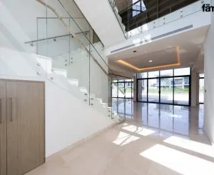 Bright open-plan interiors with floor-to-ceiling windows and modern finishes